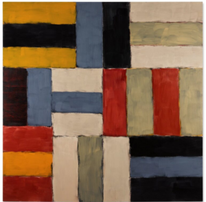 Δίπλα του, το Wall of Light Red Rose του Sean Scully εκτιμάται στα £600.000–£800.000. Το έργο ανήκει στη σειρά Wall of Light, που θεωρείται εμπορικά και καλλιτεχνικά κομβική για την καριέρα του Scully, με σταθερό secondary market performance τα τελευταία χρόνια.