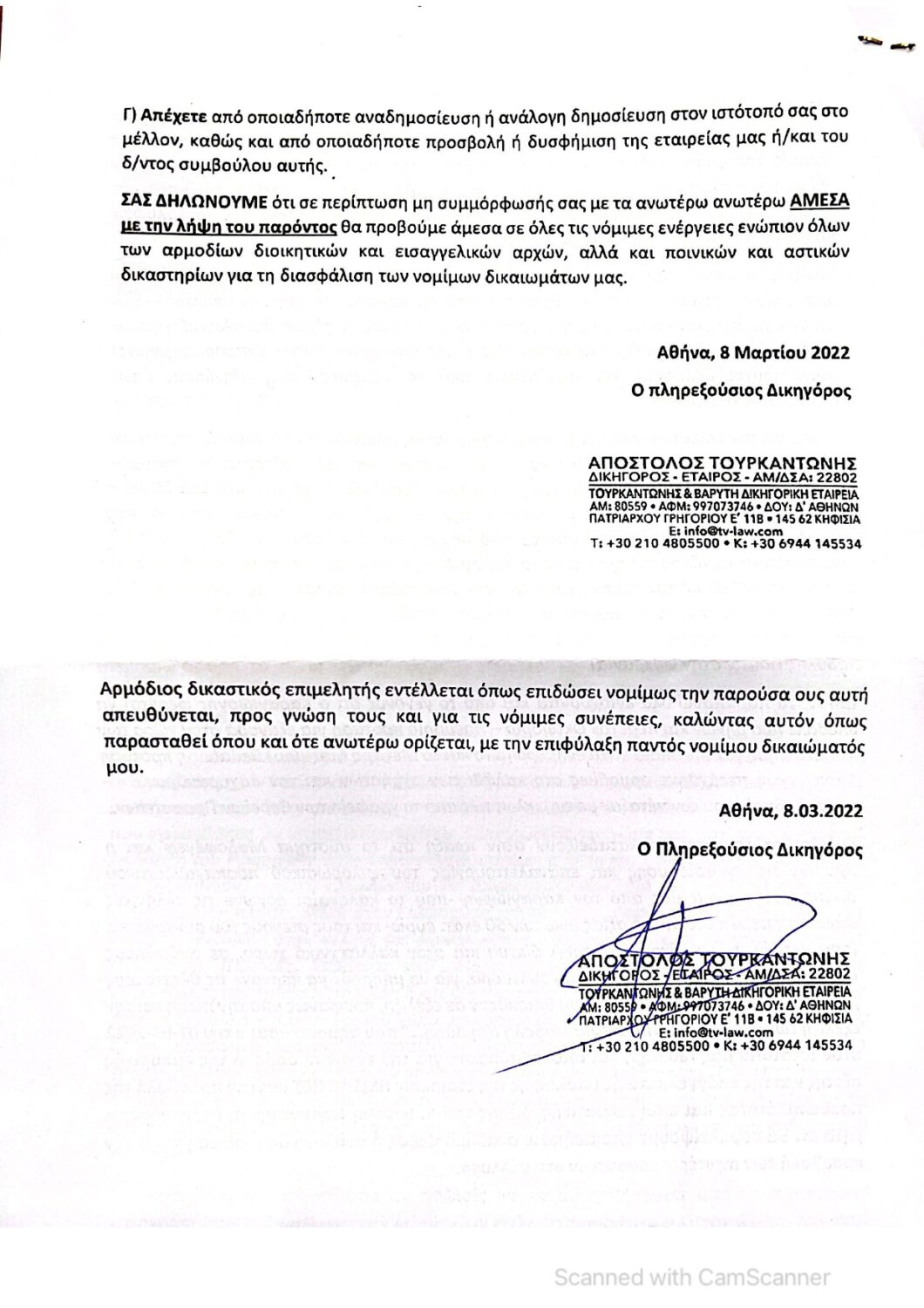 Στα πλαίσια της δεοντολογίας είναι προφανές πως το εξώδικο Καραγιώργη θα το δημοσιεύσουμε αυτούσιο για να αντιληφθεί και να δει με τα μάτια της η κοινή γνώμη ποια είναι η θέση του και οι απαντήσεις που δίνει όσον αφορά τις αιτιάσεις του σχετικού δημοσιεύματος.