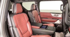 Το εσωτερικό του Infiniti QX80 είναι εκεί όπου το μοντέλο δείχνει πραγματικά τον χαρακτήρα του. Η καμπίνα θυμίζει περισσότερο premium lounge, με υλικά υψηλής ποιότητας, προσεγμένες λεπτομέρειες και έμφαση στην άνεση.