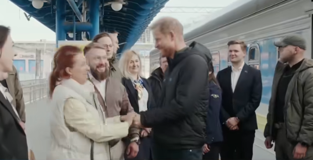 Το δίκτυο ITV News μετέδωσε πλάνα που δείχνουν τον πρίγκιπα να κατεβαίνει από τρένο προερχόμενο από την Πολωνία και να χαιρετάει κόσμο στην αποβάθρα.