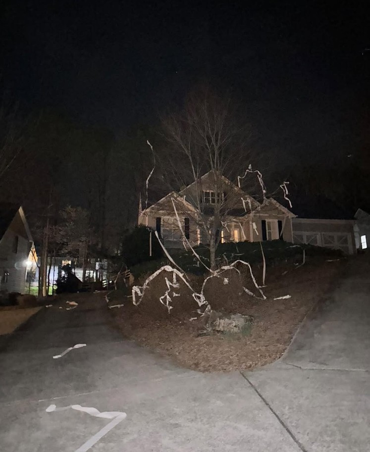 Σε σελίδα στο Instagram που ήταν αφιερωμένη στους «πολέμους φάρσας» των μαθητών είχε δημοσιευθεί στο παρελθόν φωτογραφία από το σπίτι του Χιούζ, όπου φαίνεται ο εξωτερικός χώρος καλυμμένος με χαρτί υγείας τον Μάρτιο του 2023.