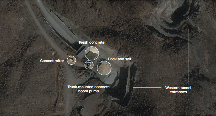 Δορυφορικές εικόνες υψηλής ανάλυσης από τις 10 Φεβρουαρίου 2026, δείχνουν ότι το Ιράν θωρακίζει τις εισόδους των σηράγγων στο υπόγειο συγκρότημα κοντά στο εργοστάσιο Natanz. Φρέσκο σκυρόδεμα είναι ορατό τόσο στις δυτικές όσο και στις ανατολικές εισόδους, αυξάνοντας την προστασία από πιθανές αεροπορικές επιδρομές, σύμφωνα με το CNN.