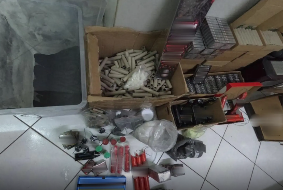 Εντοπίστηκε από αστυνομικούς να μεταφέρει σακούλα με 728 κροτίδες, τις οποίες προόριζε για πώληση, οι οποίες κατασχέθηκαν, ενώ σε επακόλουθη έρευνα στην οικία και σε παρακείμενη αποθήκη βρέθηκαν και κατασχέθηκαν 5.842 κροτίδες, 303 γραμμ. σκόνης τιτανίου, 3 κιλά και 233 γραμμ. σκόνης αλουμινίου, 5 κιλά και 500 γραμμ. σκόνης πυρίτιδας, 640 γραμμ. σκόνης θείου, 3 κιλά νιτρικού καλίου, 216 χάρτινα σωληνάρια έτοιμα για γόμωση, 3 βεγγαλικά, 5 καπνογόνα, ζυγαριά ακριβείας και δύο χαρτονομίσματα αμφιβόλου γνησιότητας.