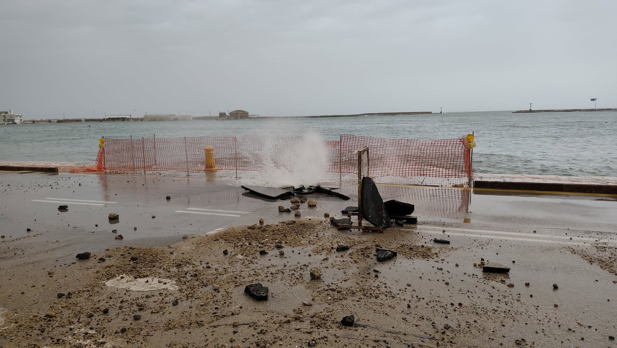 Κλειστός είναι ο δρόμος της προκυμαίας, στο λιμάνι της Χίου, λόγω καθίζησης. Παρόμοια προβλήματα υπάρχουν επίσης στον παραλιακό δρόμο του Βροντάδου, από το ύψος της περιοχής Τάγμα Δεσπότη, μέχρι Δασκαλόπετρα. Οι δρόμοι επίσης γύρω από το ξενοδοχείο Χανδρής είναι πλημμυρισμένοι και έχει απαγορευτεί η κίνηση στον παραλιακό δρόμο.