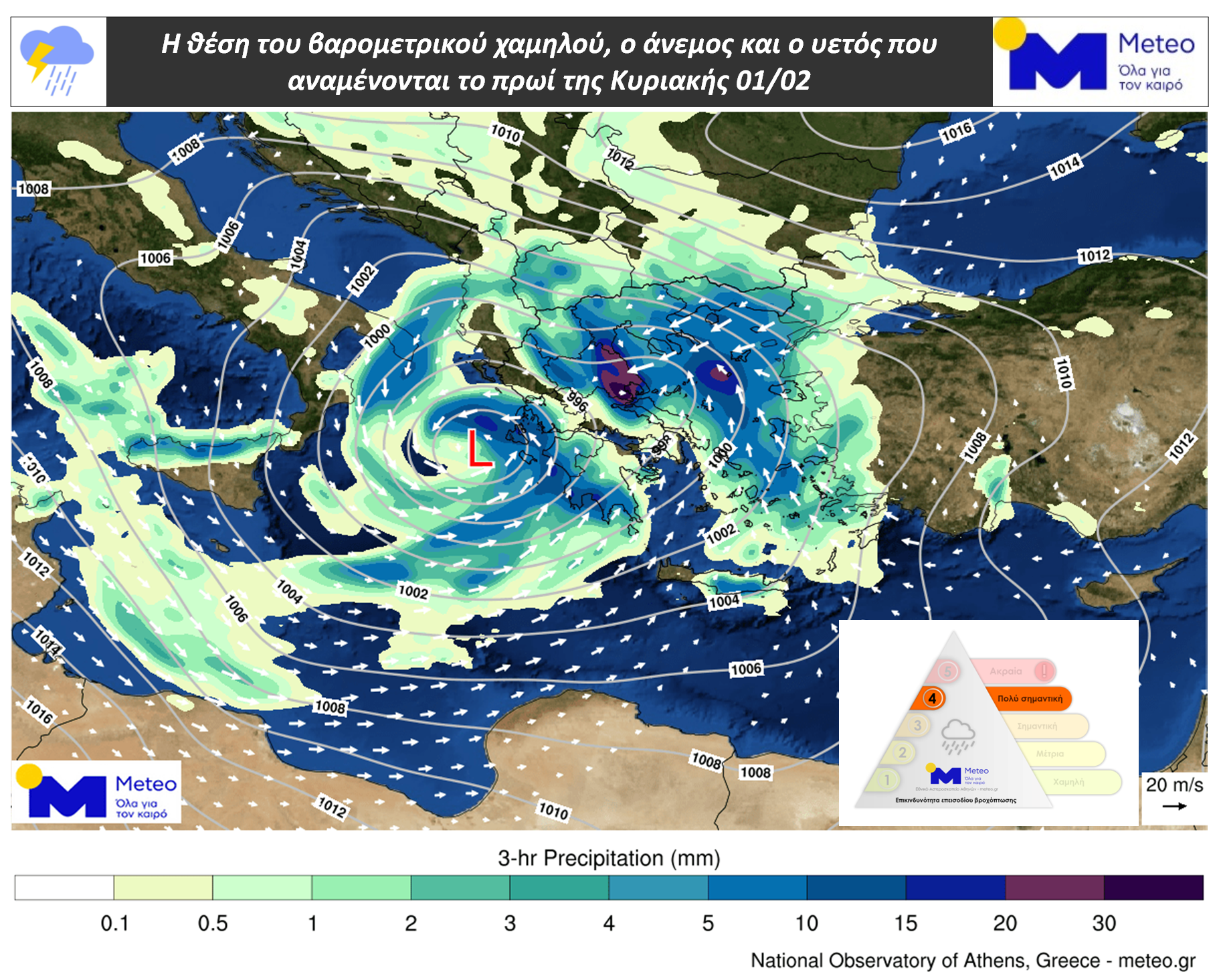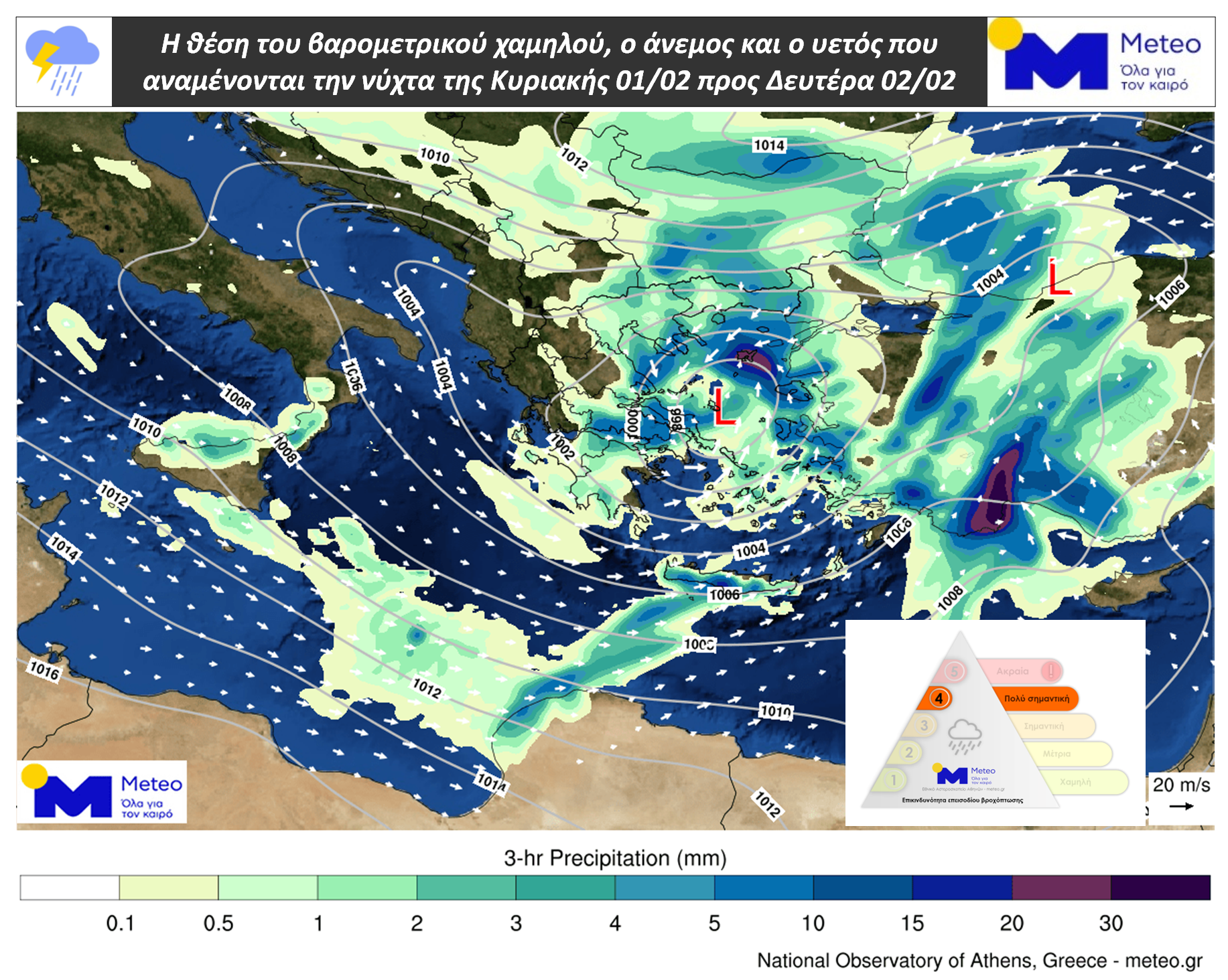 δ. Αύριο Δευτέρα ισχυρά φαινόμενα θα σημειωθούν στο Ανατολικό Αιγαίο και μέχρι τις πρωινές ώρες ισχυρές βροχές και καταιγίδες στα Δωδεκάνησα και την Κρήτη.