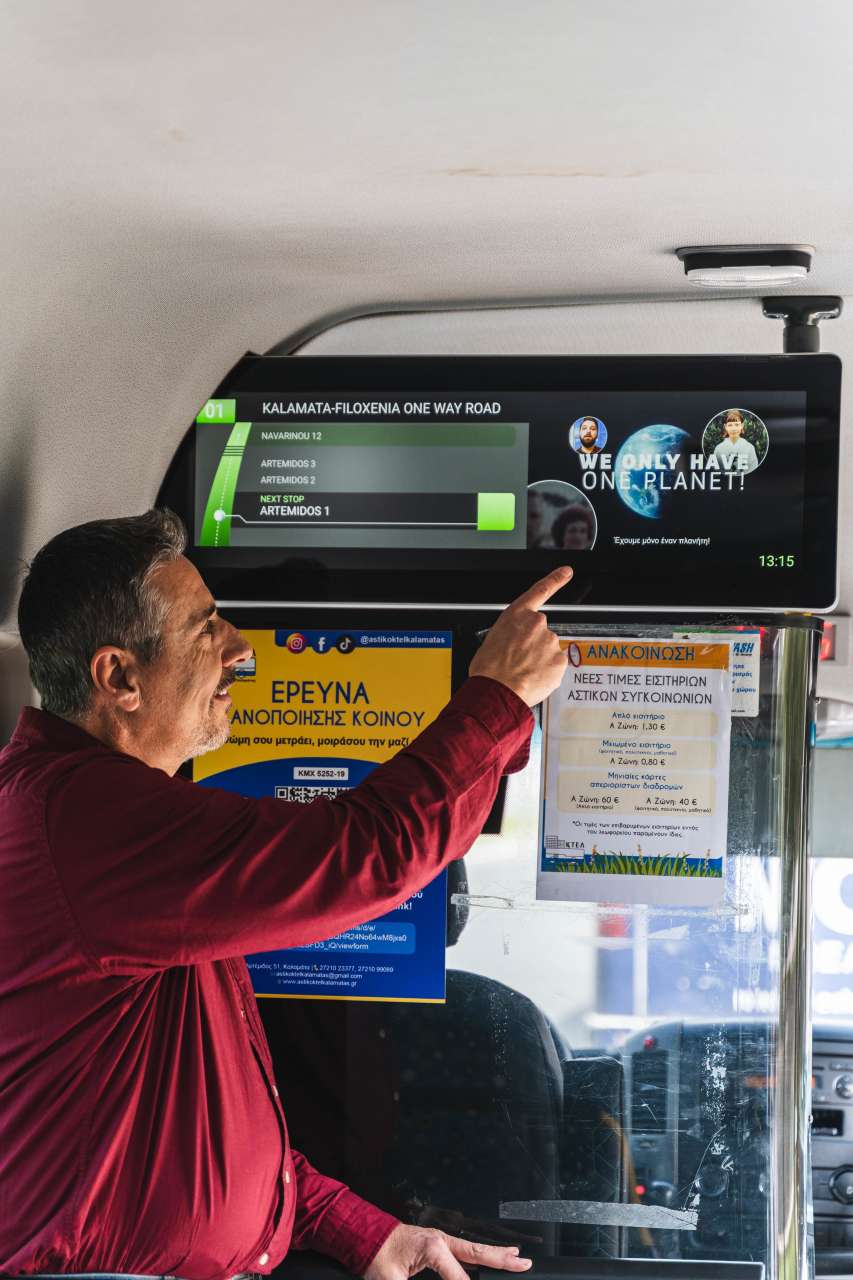 Καθημερινά, τα λεωφορεία του αστικού ΚΤΕΛ Καλαμάτας διανύουν χιλιάδες χιλιόμετρα μέσα στον αστικό ιστό και εξυπηρετούν εκατοντάδες χιλιάδες πολίτες και επισκέπτες. Αξιοποιώντας αυτές τις ψηφιακές οθόνες για την ενημέρωση των επιβατών, η νέα αυτή δράση μετατρέπει τις δημόσιες μετακινήσεις σ’ ένα κινητό μέσο κλιματικής και περιβαλλοντικής εκπαίδευσης.
