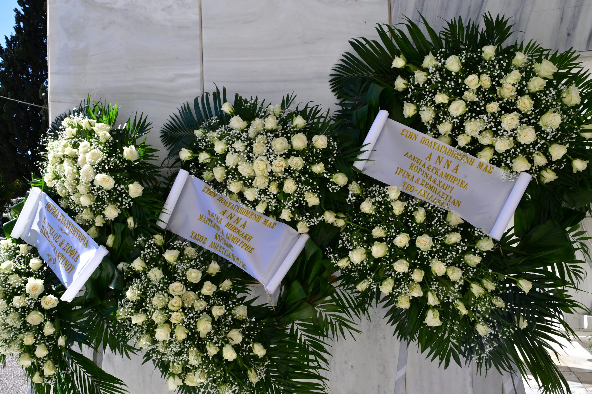 Στεφάνια έστειλαν ο πρωθυπουργός Κυριάκος Μητσοτάκης και η υπουργός Πολιτισμού Λίνα Μενδώνη.