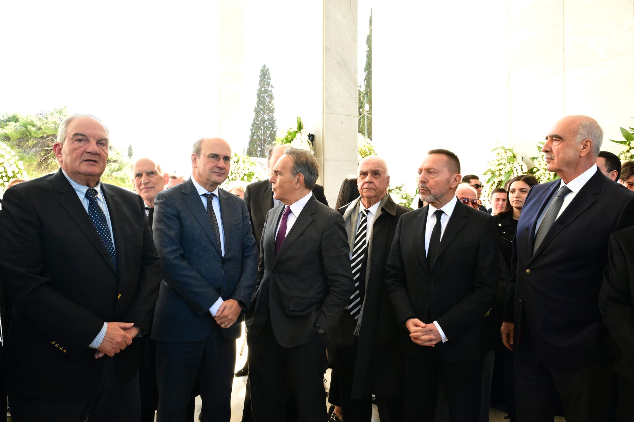 Μεταξύ άλλων, το «παρών» έδωσαν οι πρώην πρωθυπουργοί Κώστας Καραμανλής, Λουκάς Παπαδήμος και Παναγιώτης Πικραμμένος, ο πρόεδρος της Βουλής, Νικήτας Κακλαμάνης, ο πρώην Πρόεδρος της Δημοκρατίας, Προκόπης Παυλόπουλος, ο αντιπρόεδρος της κυβέρνησης Κωστής Χατζήδάκης, ο υπουργός Μετανάστευσης και Ασύλου, Θάνος Πλεύρης, η υπουργός Εργασίας, Νίκη Κεραμέως, ο υπουργός Ναυτιλίας Βασίλης Κικίλιας, ο γραμματέας της Πολιτικής Επιτροπής της ΝΔ, Κώστας Σκρέκας, ο ευρωβουλευτής της ΝΔ, Ευάγγελος Μεϊμαράκης, η Ντόρα Μπακογιάννη, ο διοικητής της Τράπεζας της Ελλάδος, Γιάννης Στουρνάρας, η Σοφία Βούλτεψη, οι πρώην υπουργοί Μιλτιάδης Βαρβιτσιώτης, Φάνη Πάλλη-Πετραλιά, Γιώργος Αλογοσκούφης και Γιάννης Βαληνάκης.