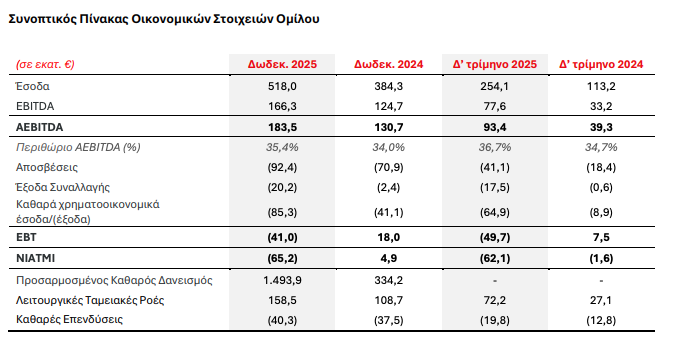 Η ενοποίηση της BII προσέθεσε €167,1 εκατ. στα Έσοδα του Ομίλου και €67,0 εκατ. στο AEBITDA (40,1% περιθώριο AEBITDA).