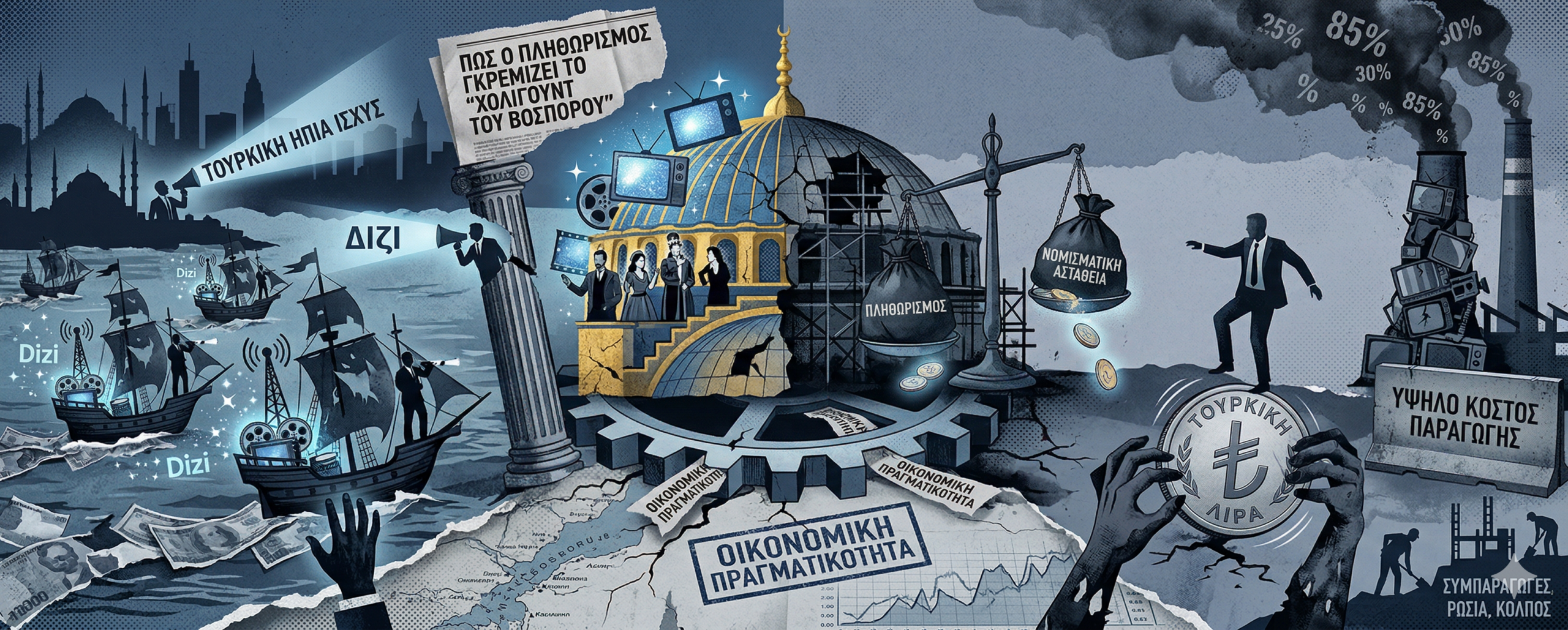 Η ιστορία των τουρκικών σειρών δεν είναι απλώς ένα αφήγημα ψυχαγωγίας· είναι μια οικονομική και γεωπολιτική παραβολή. Για χρόνια, παραγωγές όπως ο «Σουλεϊμάν ο Μεγαλοπρεπής» λειτουργούσαν ως η αιχμή του δόρατος της τουρκικής ήπιας ισχύος (soft power), καθηλώνοντας εκατομμύρια τηλεθεατές σε 170 χώρες και αποφέροντας εκατοντάδες εκατομμύρια δολάρια σε συνάλλαγμα. Η κυβέρνηση Ερντογάν επένδυσε πολιτικά σε αυτή τη βιομηχανία, βλέποντας σε αυτήν τον ιδανικό πρεσβευτή μιας νεο-οθωμανικής αίγλης. Αλλά το οικονομικό μοντέλο που στήριξε αυτή την επιτυχία καταρρέει κάτω από το βάρος του πληθωρισμού και της νομισματικής αστάθειας.
