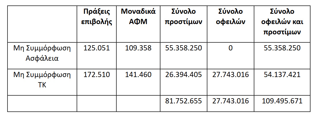 Συνολικά αποστέλλονται 297.561 πράξεις επιβολής προστίμου για ασφάλεια και οφειλής τελών κυκλοφορίας με το αντίστοιχο πρόστιμο, και συγκεκριμένα: