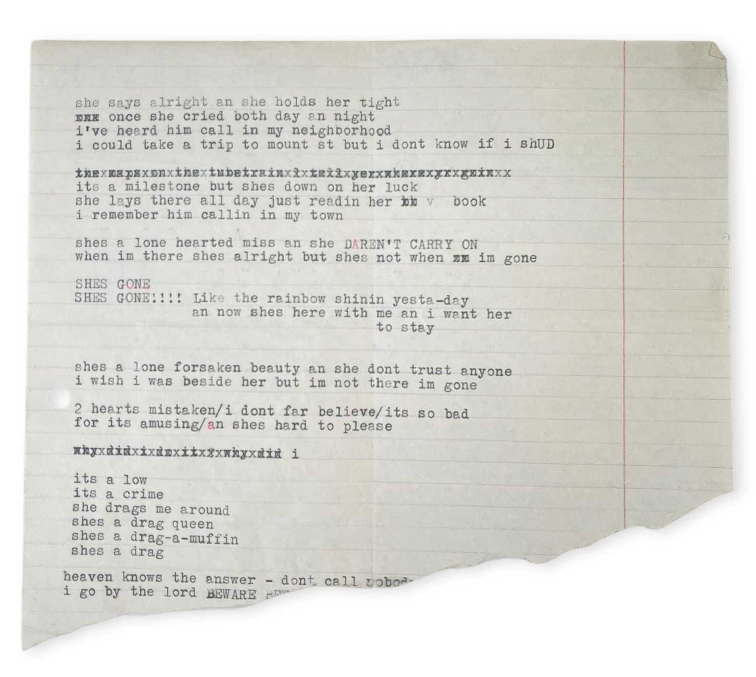 Πρόκειται για μια σκισμένη σελίδα με δακτυλογραφημένους στίχους του τραγουδιού «I’m Not There», το οποίο γράφτηκε το 1967, σε μια ιδιαίτερα δημιουργική περίοδο για τον Bob Dylan. Το εύρημα ανακαλύφθηκε μέσα σε ένα αντίτυπο πρώτης έκδοσης του βιβλίου «Ankor Wat» του Allen Ginsberg, το οποίο ανήκε στη Sally Grossman, στενή φίλη του καλλιτέχνη και σύζυγο του πρώτου μάνατζέρ του, Albert Grossman.