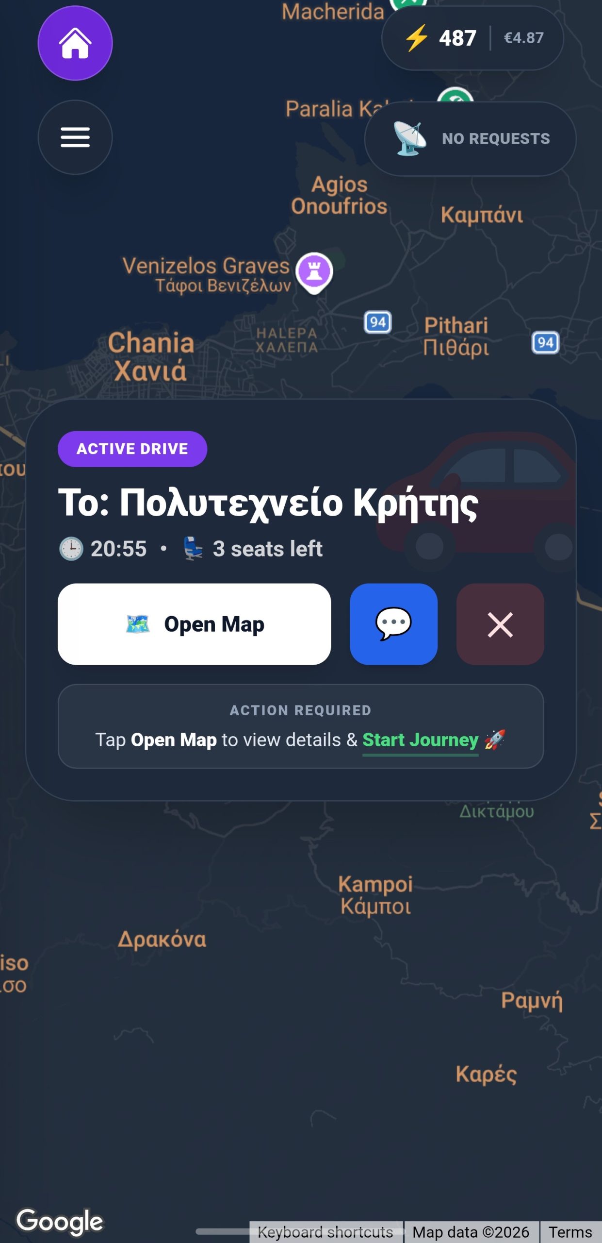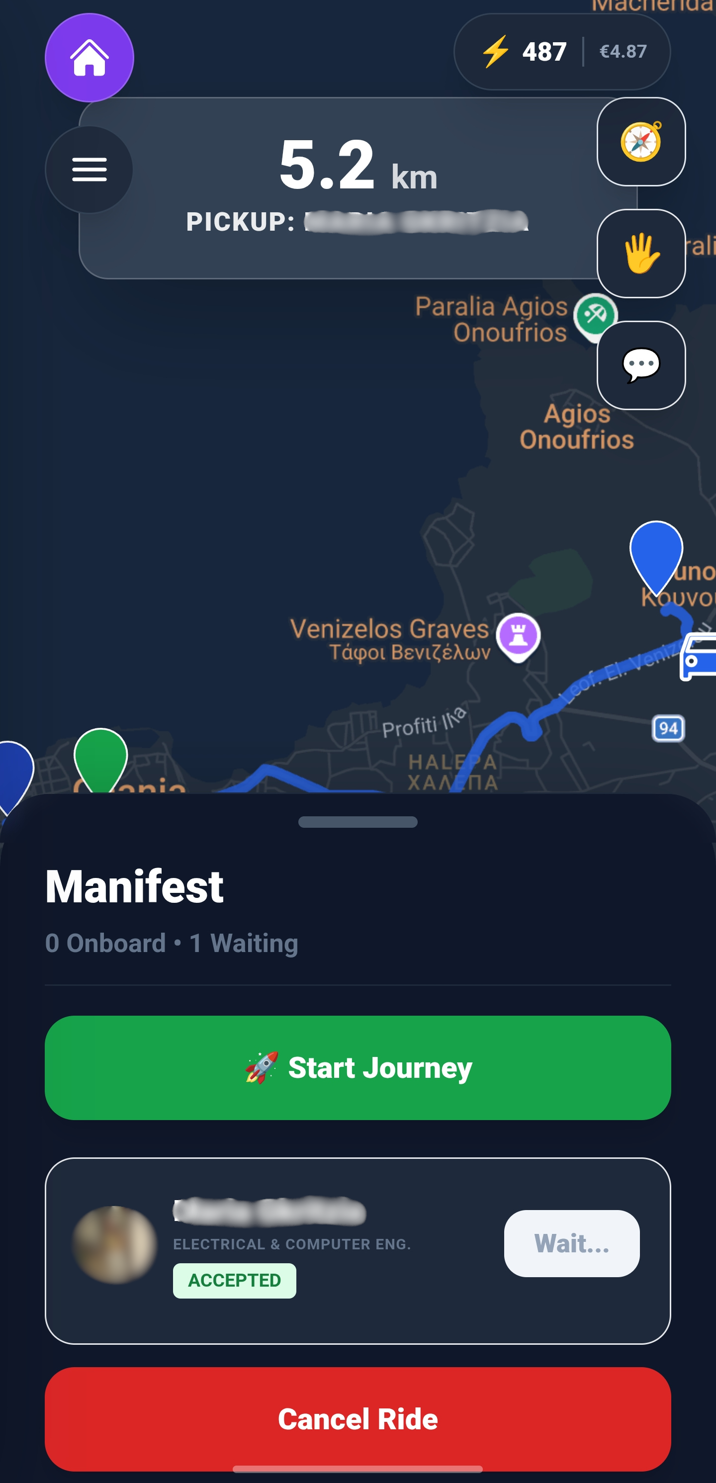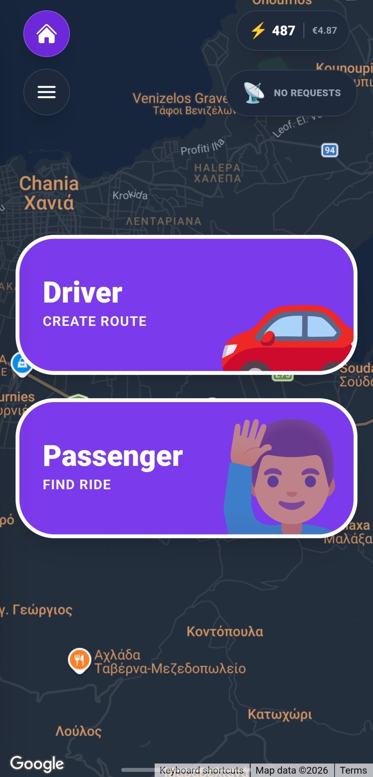 2. Αίτημα Διαδρομής και Automatching: Αν ο επιβάτης δεν βρει διαθέσιμο όχημα, μπορεί να δημοσιεύσει ότι “ψάχνει αμάξι” για συγκεκριμένη ώρα (Request). Οι χρήστες που βρίσκονται κοντά μπορούν να δουν αυτό το αίτημα. Χάρη στο Automatching, με το που ένας οδηγός καταχωρήσει μια διαδρομή που ταιριάζει με το αίτημα, στέλνεται κατευθείαν ειδοποίηση (request) από τον επιβάτη στον οδηγό. Έτσι, δημιουργείται άμεσα προσφορά εκεί που υπάρχει ζήτηση.