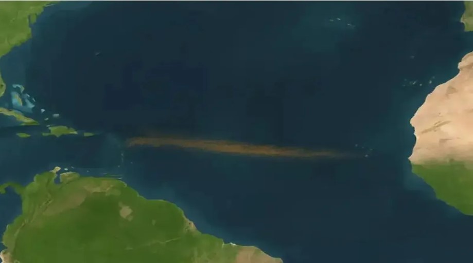 Αν πετούσατε χαμηλά πάνω από τον τροπικό Ατλαντικό πέρσι το καλοκαίρι, θα βλέπατε μια καφέ, χρώματος σκουριάς λωρίδα, μερικές φορές πλάτους άνω των 100 χιλιομέτρων, που τυλίγεται και σπάει, και μετά ενώνεται ξανά. Αυτή η λωρίδα φαίνεται καθαρά και στις δορυφορικές εικόνες ως μια συνεχόμενη καφέ κηλίδα μεταξύ της Βραζιλίας και της Δυτικής Αφρικής.